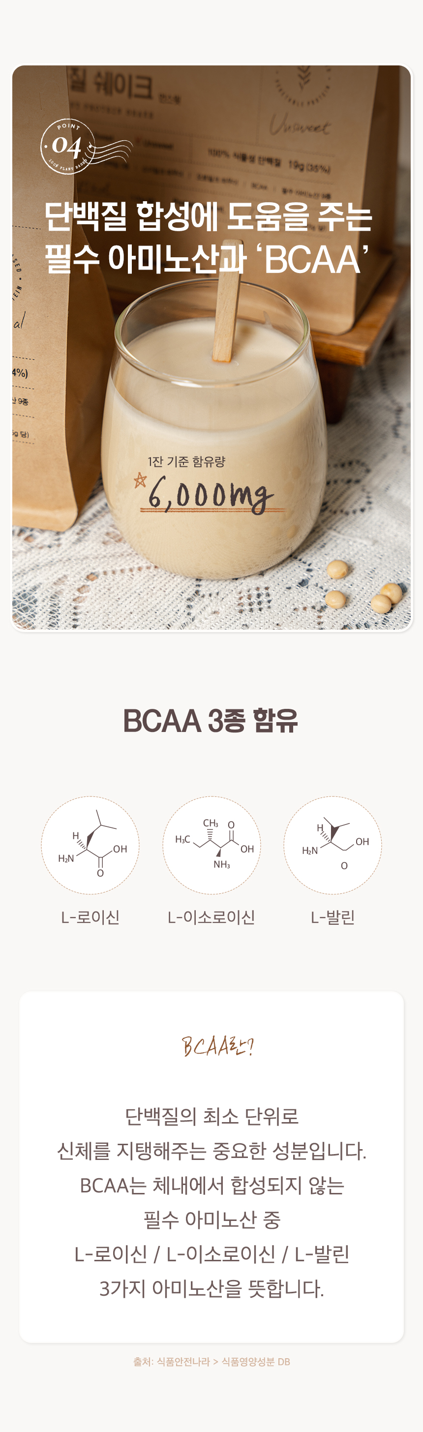 분지사슬 아미노산(BCAA) 3종을 추가하였으며