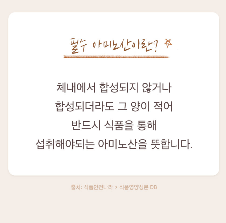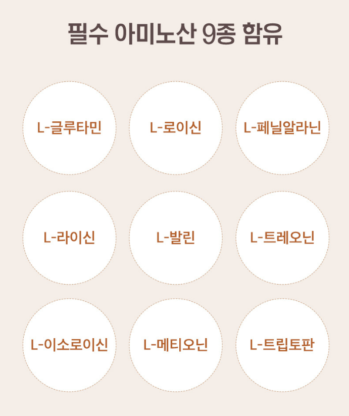 원료 측면에서 필수 아미노산 9종과