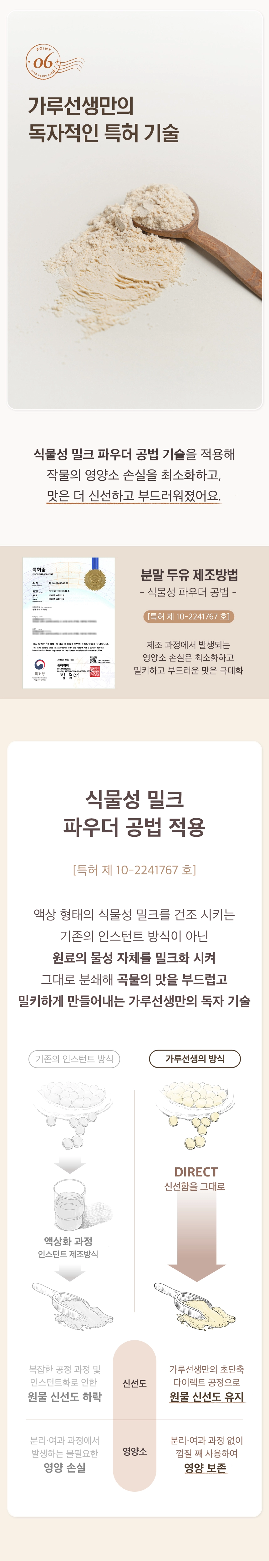 독자적인 특허 기술로 추출하였으며, 분말 형태임에도 부드러운 질감을 자랑합니다.