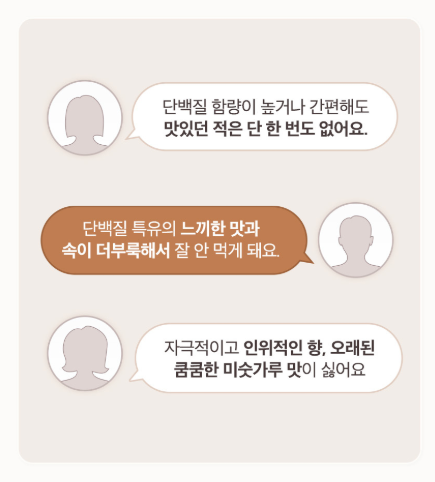 맛뿐만 아니라 엄선된 고품질 원료로 제작되었으며, 순수 식물성 단백질로 건강한 단백질을 제공합니다.